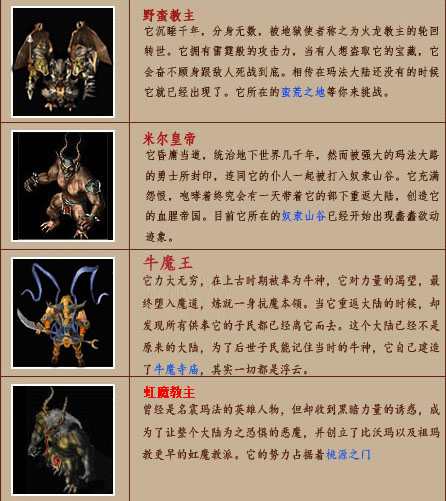 特别说明:BOSS系列怪物都比较凶猛,建议组队前往。