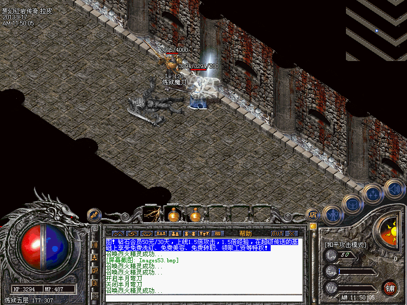 炼狱五层 打败5000血炼狱魔锤 进入六层 |