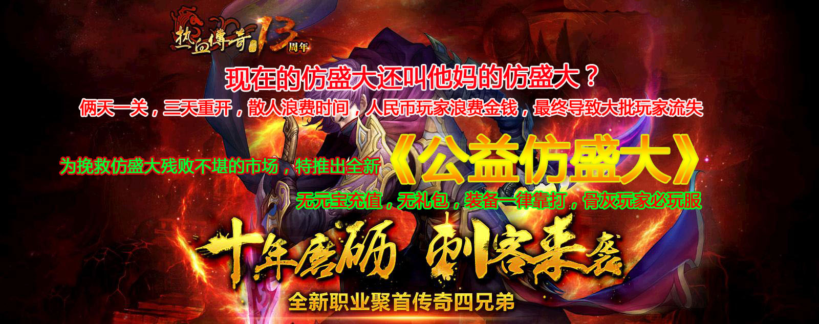 ◇ 重金广告,不为盈利,只为挽救仿盛大市场,装备一律靠打,真正的骨灰玩家服!