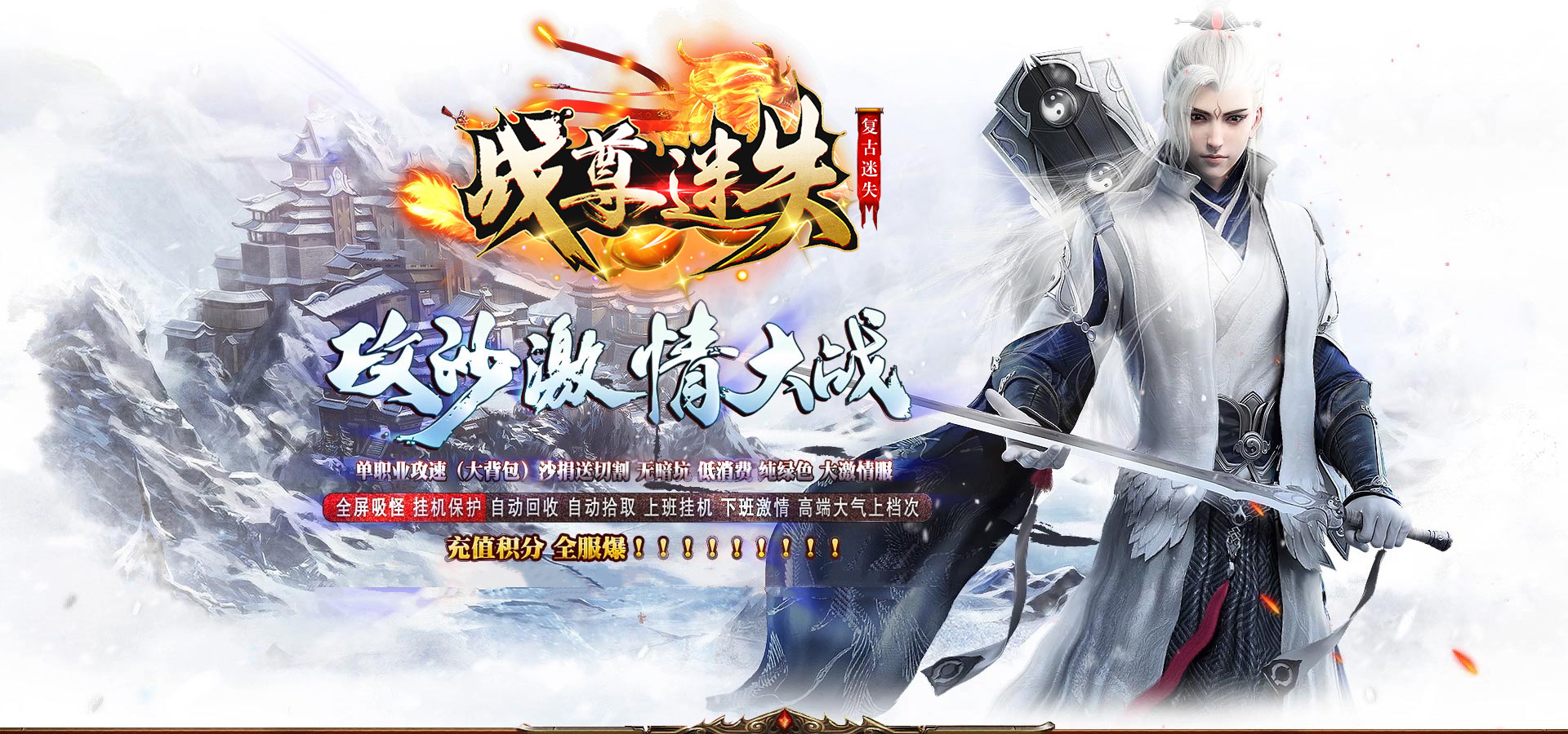 【游戏介绍】:开区第二天下午合区、晚上08:00点集体开启沙巴克激情之战!