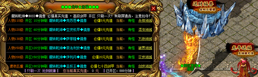 龙年送福活动 【充值直接爆】220满级 ★好玩不变态★