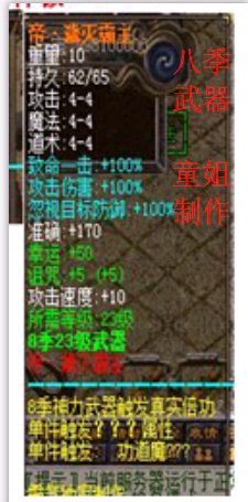 10:更新4张八季地图爆所有装备!此次更新所有装备全部爆!童姐魅影每10天更新一次建议玩家