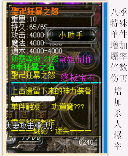 8:增加聖卍狂暴之怒宝石一个带上此单件威力增加倍数增加爆率增加杀死对手爆率增加土豪的象征!(可爆出)